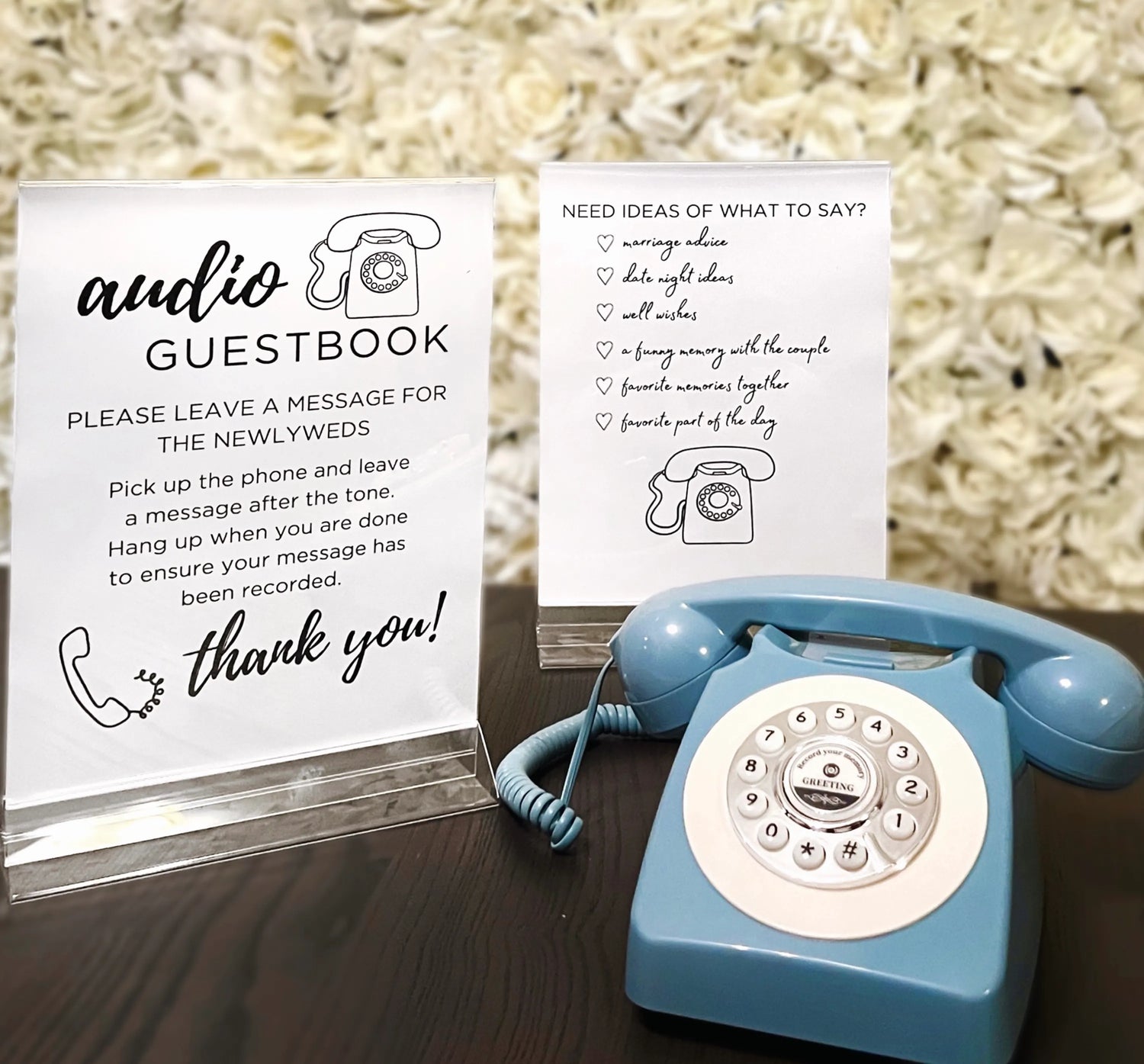 Guests simply speak into the audio guestbook station, and their messages are recorded. You’ll receive a digital copy of all the messages after the event.
